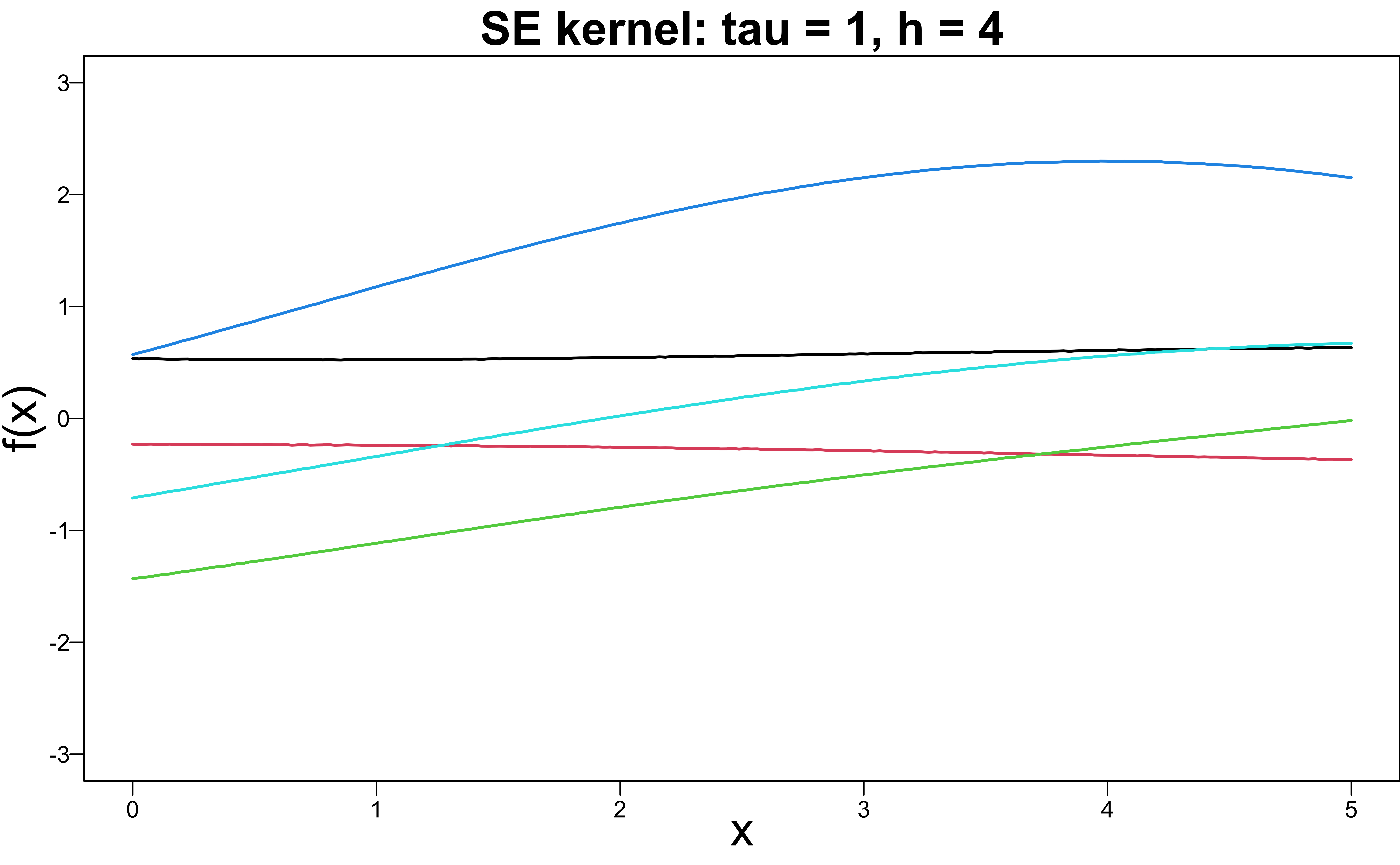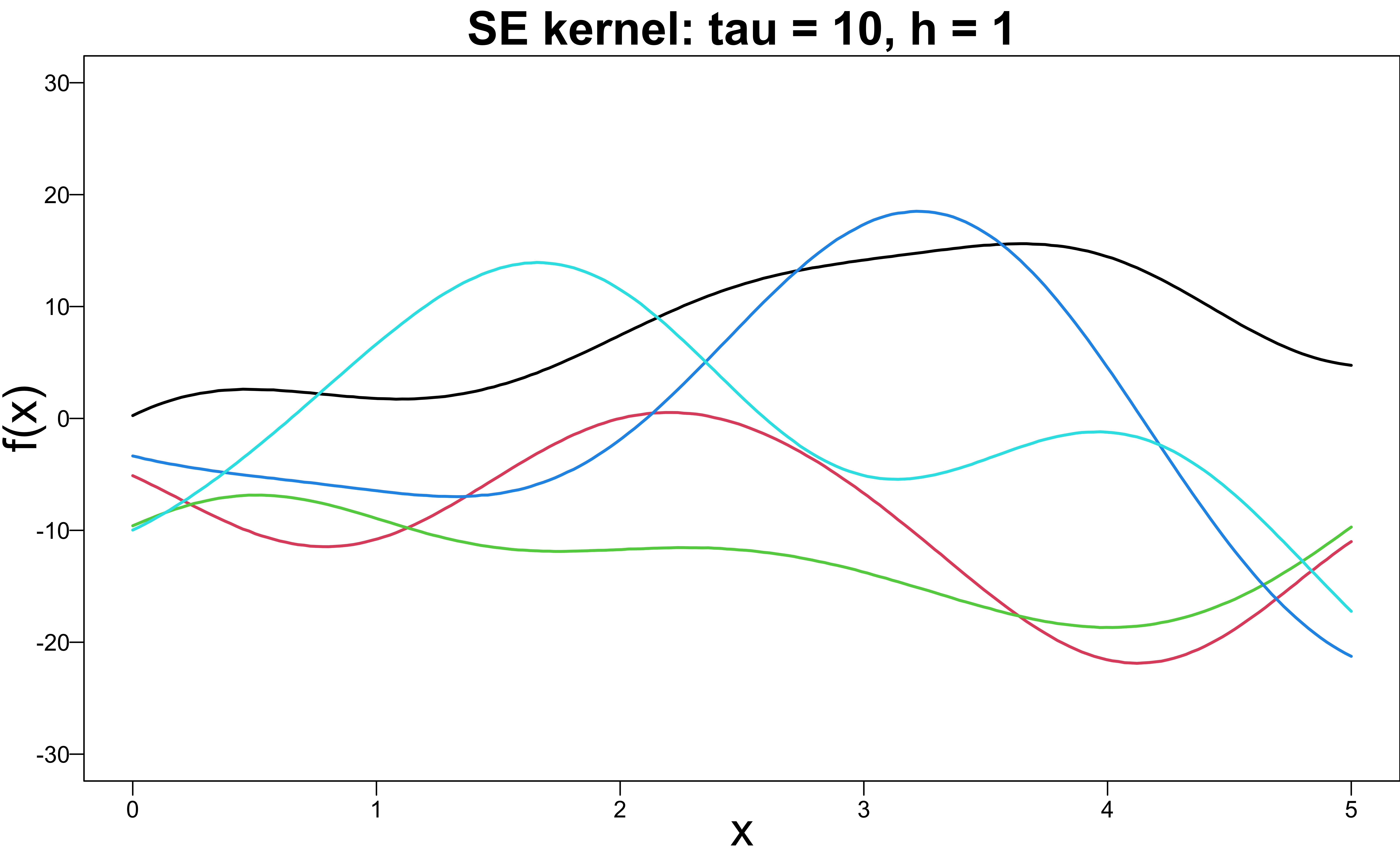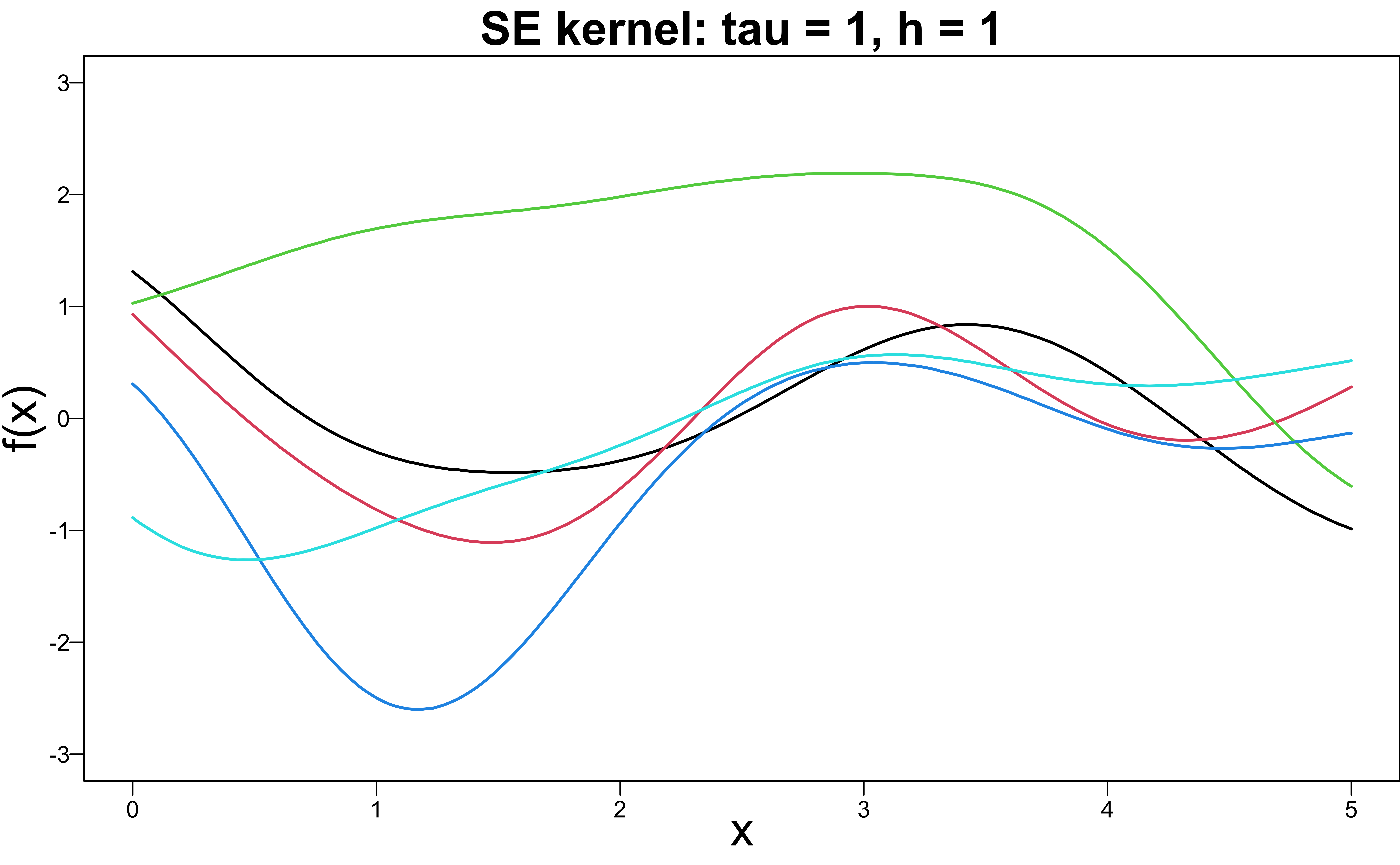 k(x, x' \mid \tau, h) = \tau^2 \exp\left(-\frac{(x - x')^2}{2h^2} \right)
