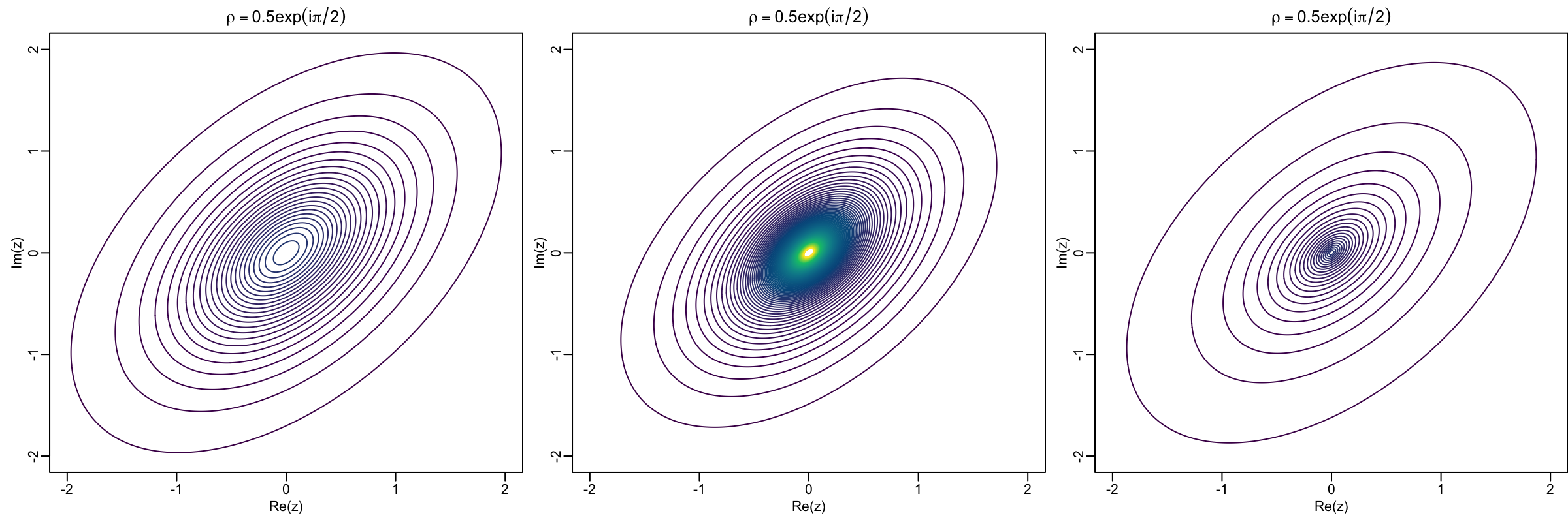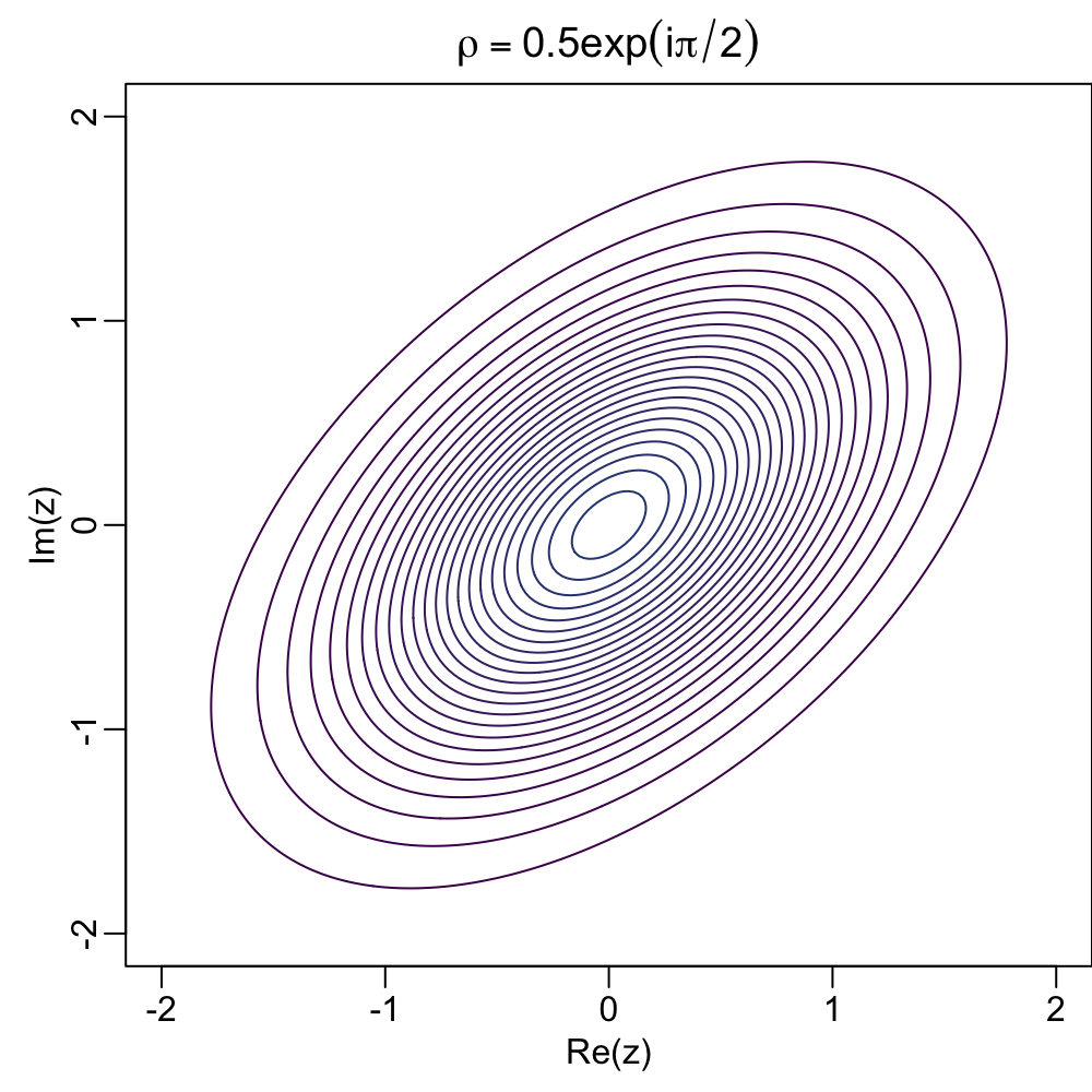 The scale mixture of complex Gaussians of \mathbf{Z} has its marginal density f(\hbox{\bf z}) = \int_{0}^{\infty} CN_p\left(\mathbf{0}, \tau^2\boldsymbol \Omega, \tau^2\boldsymbol \Lambda\right) h(\tau) \, d\tau.