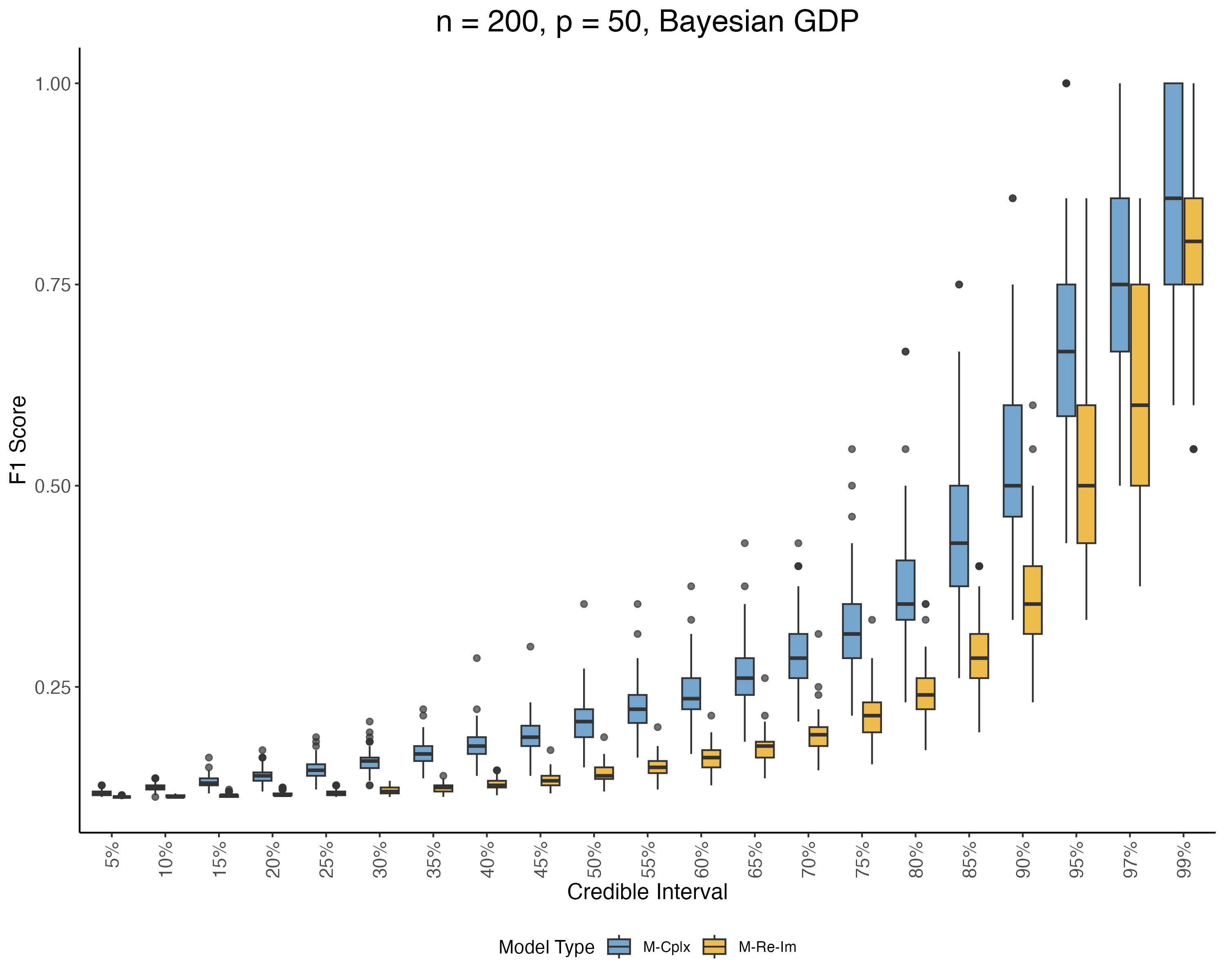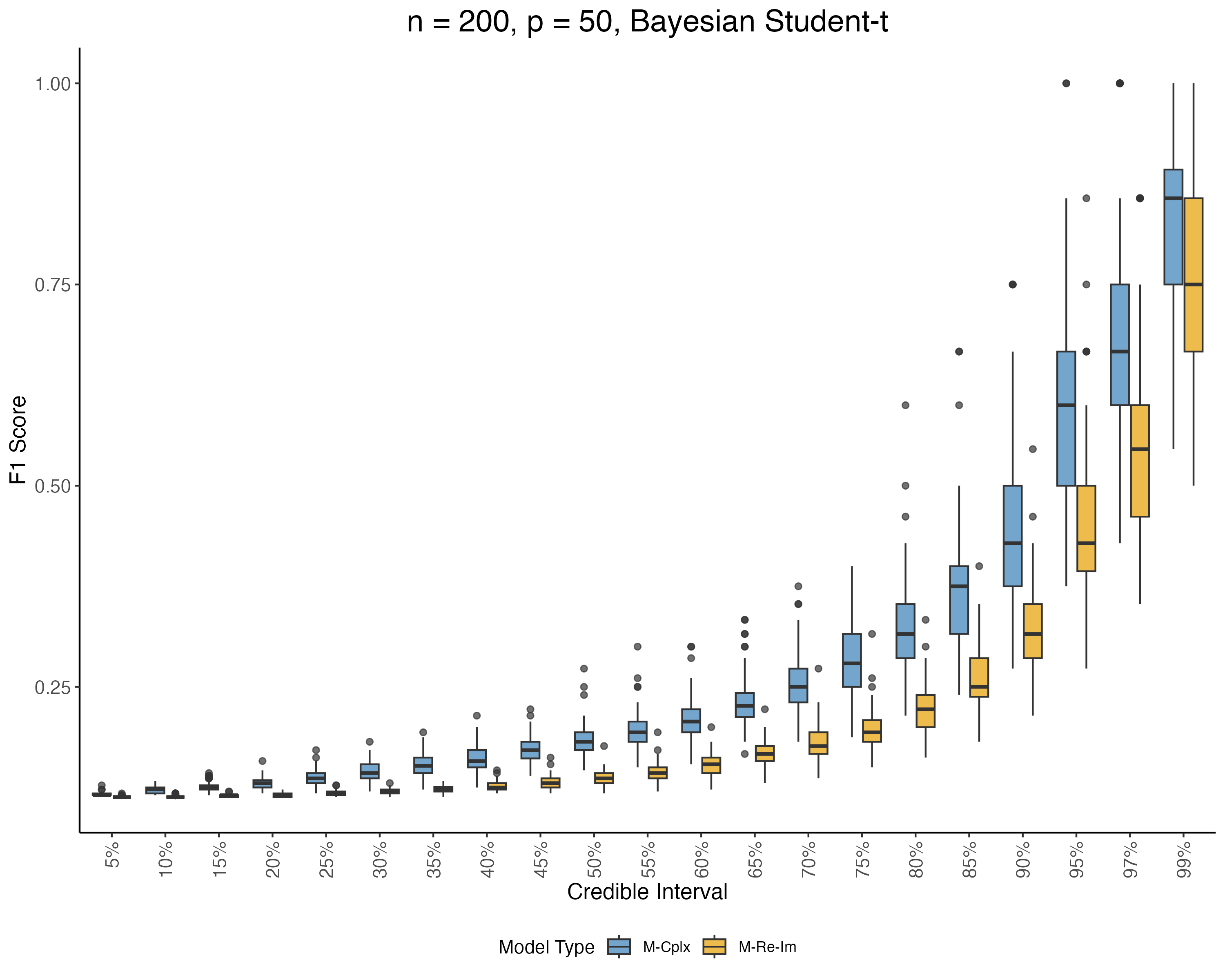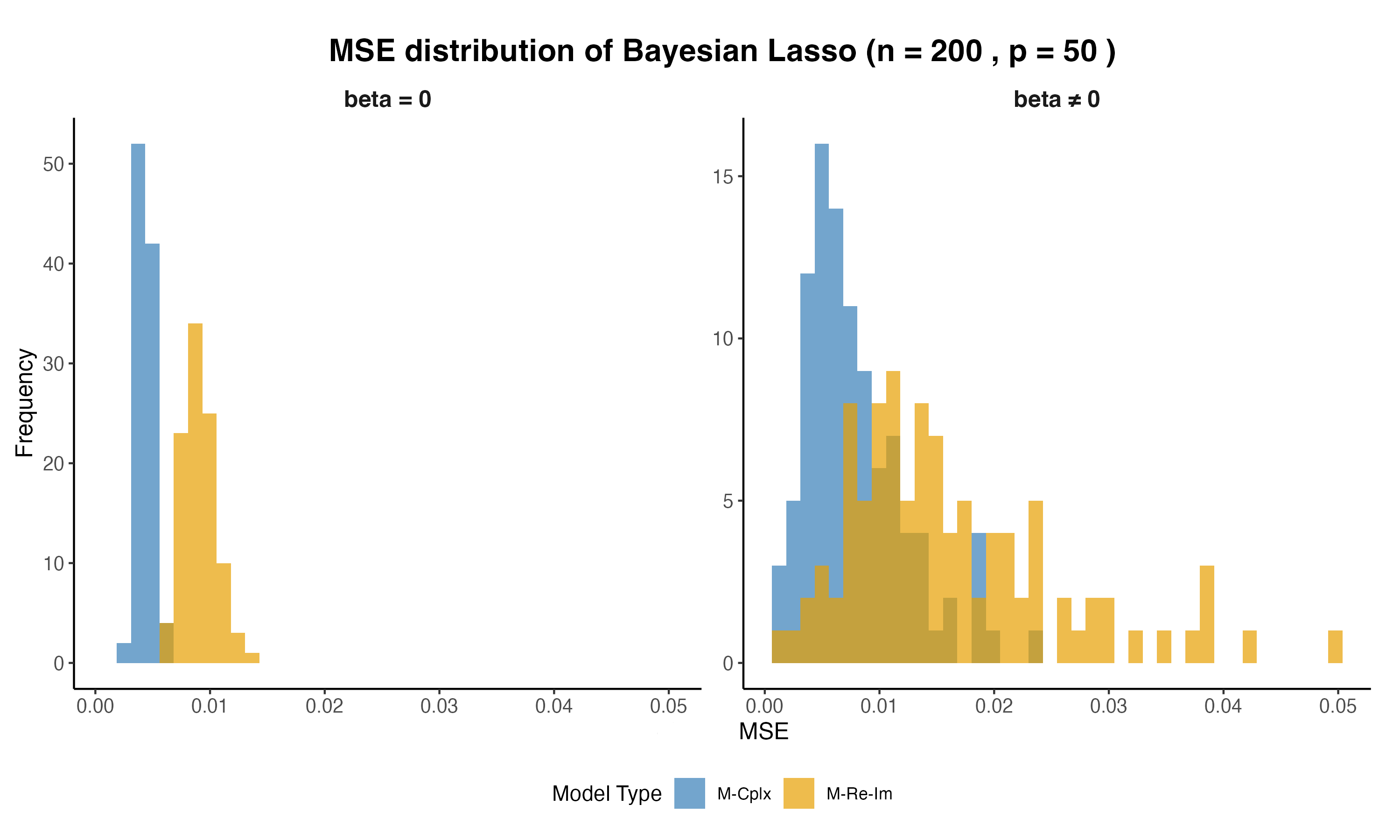 M-Cplx: \boldsymbol{\epsilon}\sim CN(\mathbf{0}, 2\sigma^2\mathbf{I}_n, 2\sigma^2\rho\mathbf{I}_n) and \beta_j \sim CN(0, 2\sigma^2\tau_j^2, 0)