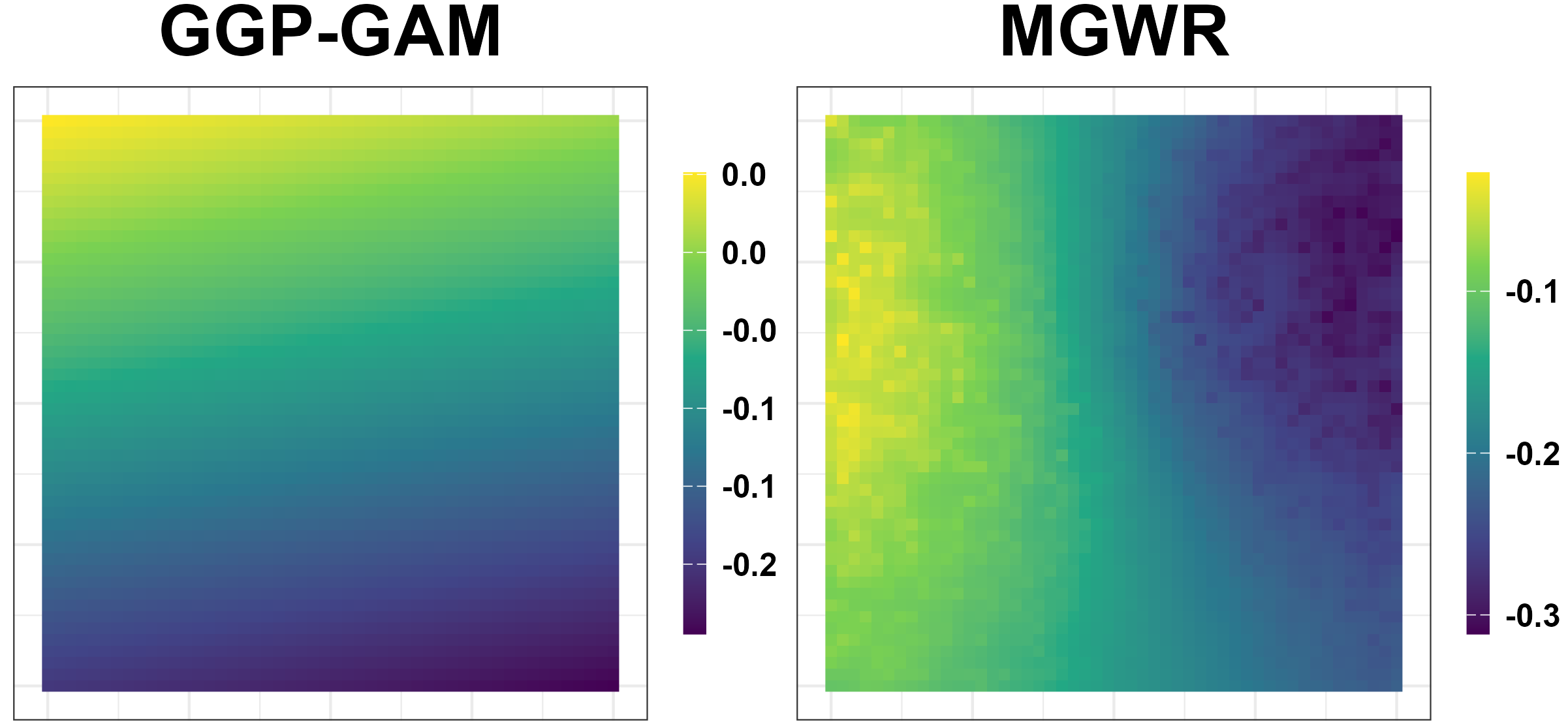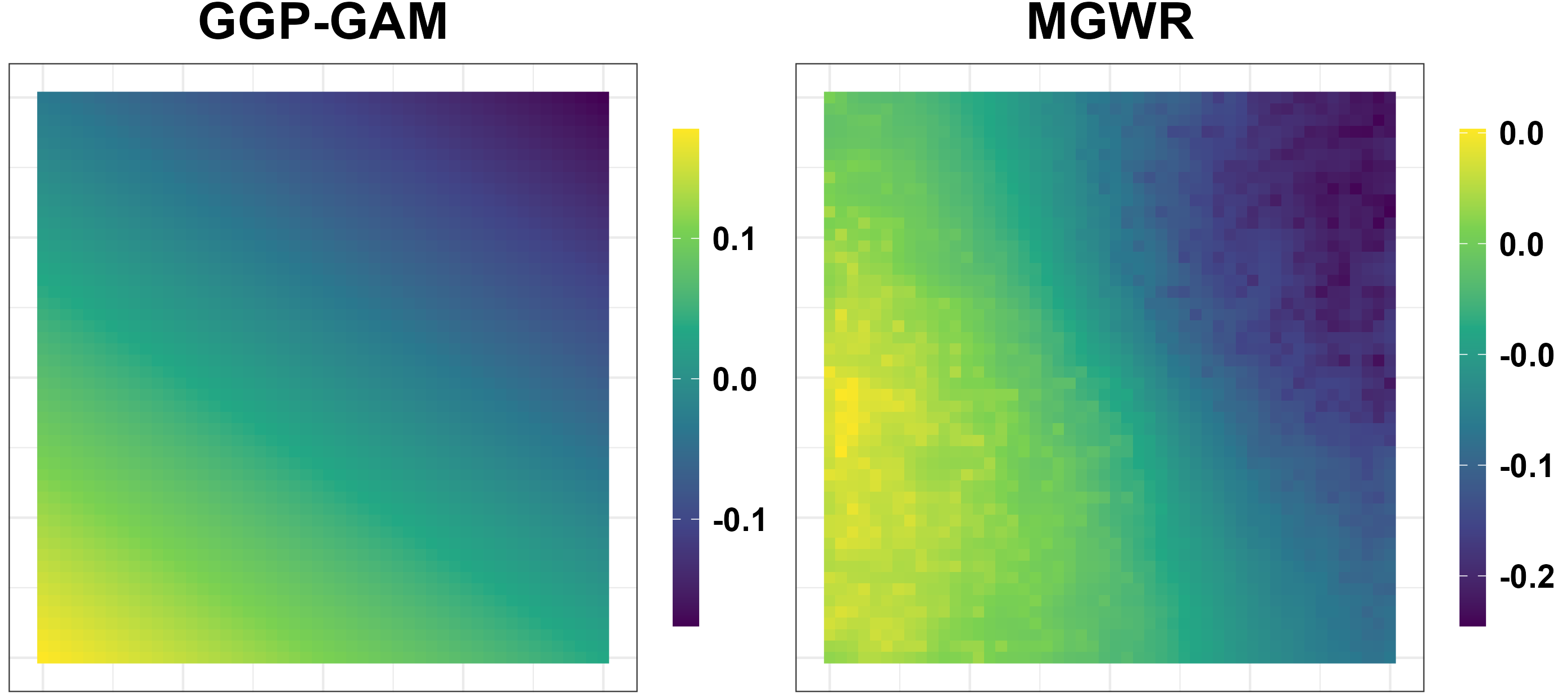 SVC and GWR estimate location-specific or process-based coefficient variation (Gelfand et al. 2003; A. Stewart Fotheringham, Brunsdon, and Charlton 2002).